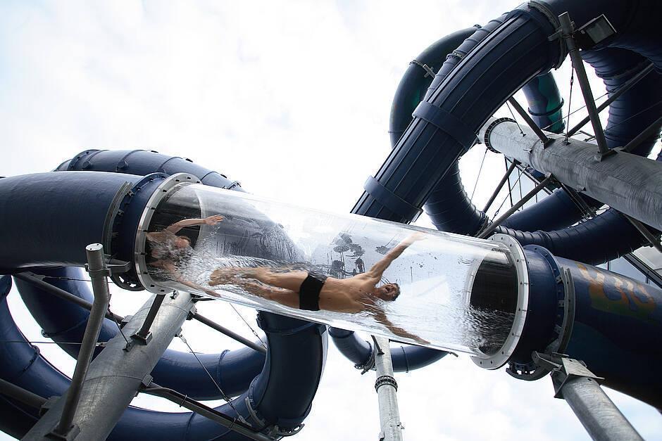 Richtig cool! Die längste Wasserrutsche Westösterreichs und die Reifen-Röhren-Rutsche sorgen für ordentlich Adrenalin und jede Menge Spaß. Das große Erlebnisbecken, das Wellenbecken, der Strömungskanal sowie das Solebecken sind wahre Highlights für jedes Alter. Entspannung pur bietet die Wellness- und Saunalandschaft – der ideale Rückzugsort zum Abschalten und Erholen.