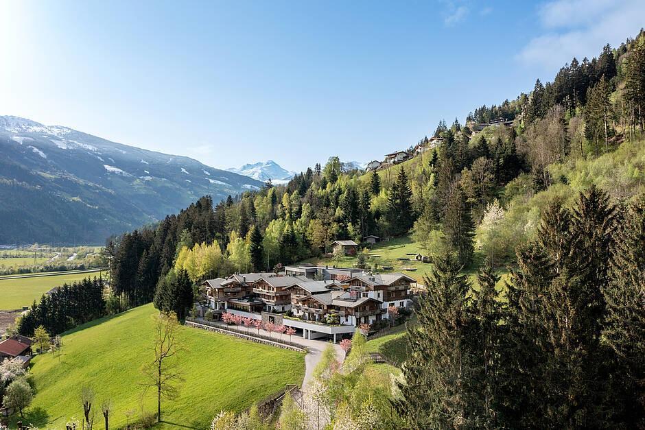 - Naturschauspiel im Frühling: Unser Naturhotel bietet ein einzigartiges Naturerlebnis im Frühlingsurlaub im Zillertal. Kirschbäume blühen in Rosarot im japanischen Blütenstil, der Mischwald erstrahlt in sattem Grün, und die Bergwiese mit Bergbach sorgt für frische Bergluft.