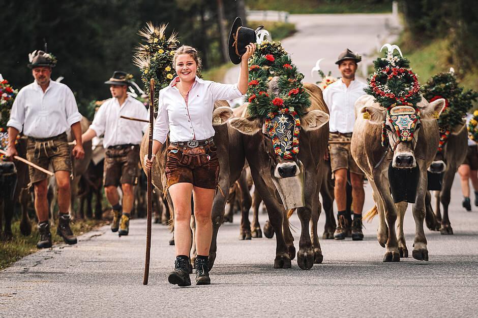 Tradition hautnah erleben - so finden im Herbst die Almabtriebe statt - der Brauchtum der heimischen Bauern mit der Rückkehr von Vieh und Hirten mit den geschmückten Kühen ist ein alljährliches Highlight im Zillertal.