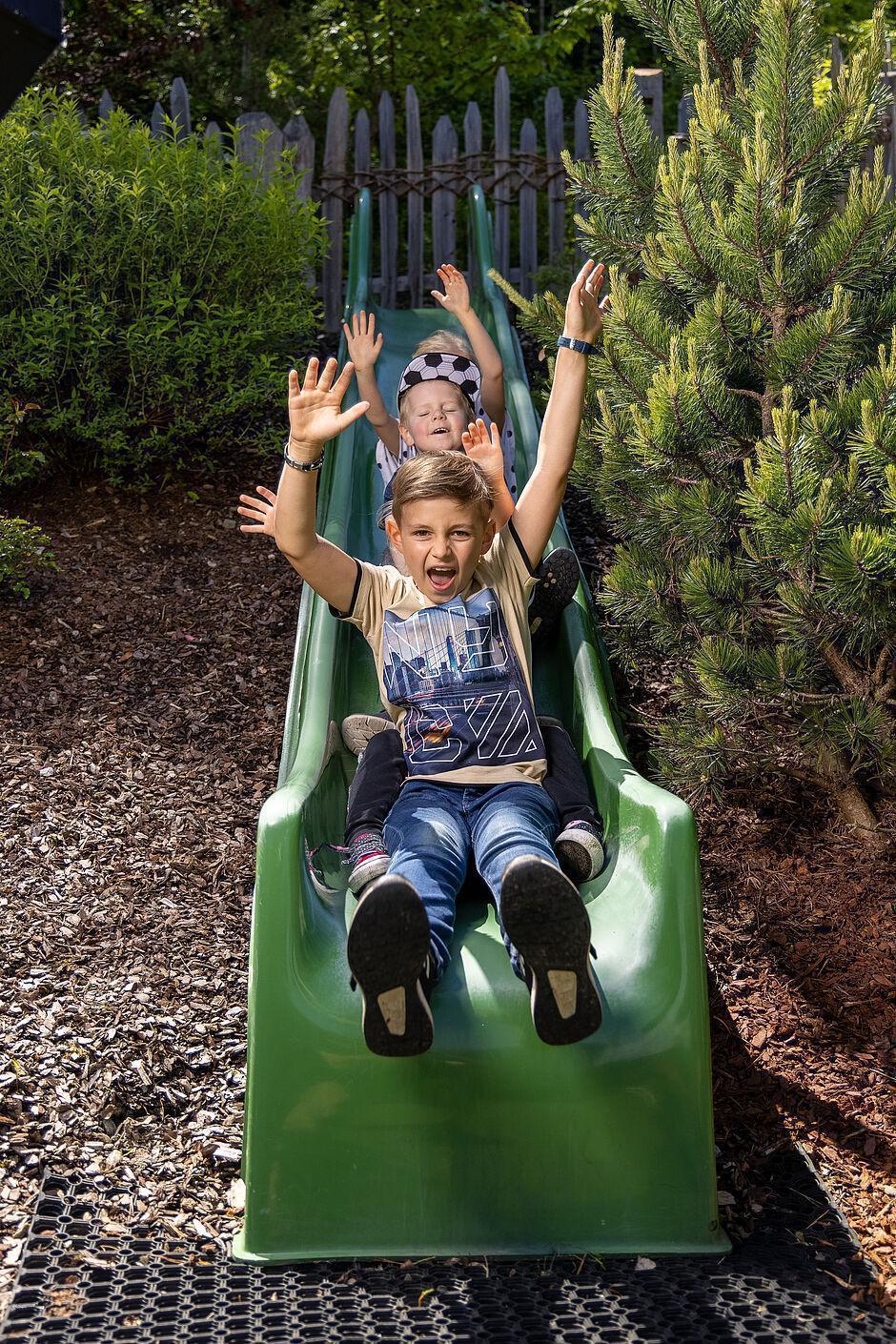 Our playground right at our family hotel not only impresses with its stunning location in the forest but also with the most modern and trendy play equipment for children, teens, and young adults. The highlights of our forest playground include: