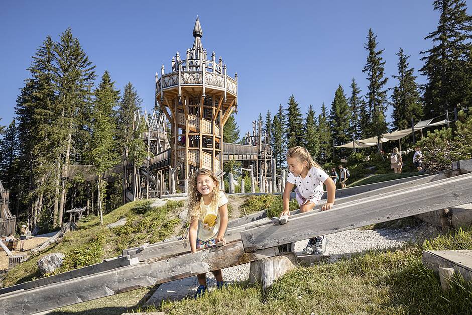Fichtenwelt auf der Rosenalm. Das absolutes Highlight im Familienurlaub in Tirol ist das Fichtenschloss und der neue Fichtensee bei der Rosenalmbahn in Zell am Ziller - ein riesiges Schloss aus Holz mit einer einzigartigen Spielanlage. Neu ist auch der angrenzende Fichtensee, welcher zum Relaxen für die ganze Familie inmitten der Natur einlädt. Eine Kombination mit einer Genusswanderung am Schmankerlweg bietet sich von der Bergstation der Rosenalmbahn perfekt an!