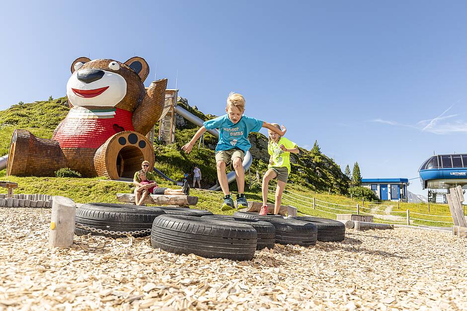 - Erlebnisspielplatz am Spieljoch – Mit coolem Wasserpark für kleine Entdecker sowie einer actionreichen Downhillstrecke für Monsterroller & Mountaincarts.