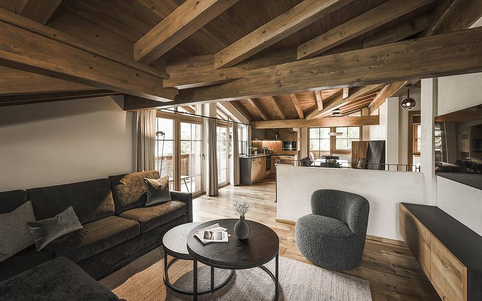 Our spacious apartments and family suites blend alpine coziness with modern comfort – perfect for everyone who needs room to breathe on holiday. Fully equipped kitchens, stylish living spaces and plenty of room for unforgettable family moments.
