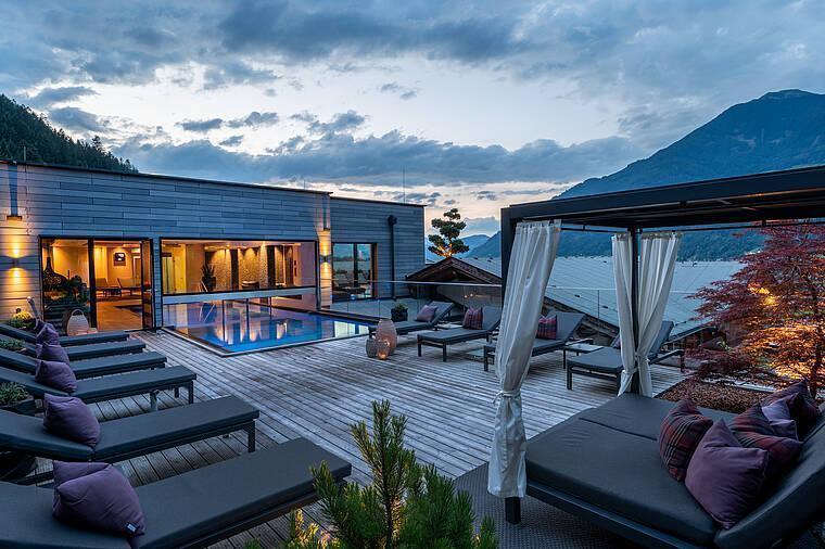 The Kaltenbach is the perfect golf hotel at the "Leading Golf Course" in the Zillertal, with the ideal location for all lovers of this sport. Here you can improve your handicap in the golden autumn amidst a fantastic mountain backdrop and then relax in the Rooftop Spa and in the 5,000 m² natural garden. Our Golf & Relax Package "Feeling. Green" includes the following services: